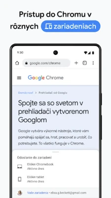 Užite si bezproblémový prechod medzi vašimi zariadeniami s prehliadačom Chrome. Vďaka funkcii synchronizácie medzi zariadeniami máte prístup k svojim záložkám, otvoreným kartám a heslám, nech už sa prihlásite na telefóne, počítači alebo tablete. Udržujte si poriadok a zefektívnite svoju prácu so Skupinami kariet, ktoré vám pomôžu usporiadať webové stránky. Navyše, funkcia automatického dopĺňania vám šetrí čas pri vypĺňaní uložených platobných údajov, adries a prihlasovacích mien, čím zjednodušuje každodenné online aktivity.