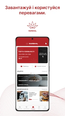 Okrem základných výhod aplikácia MARSHAL Ukraine prináša aj zábavné a odmeňujúce prvky. Zapojte sa do programu „Úspechy", kde sa každá vaša platba za kávu, limonádu, hot dogy či iné pochutiny a produkty počíta. Zbierajte trofeje a získavajte kupóny na bezplatné nápoje, ktoré môžete ihneď využiť na ktorejkoľvek čerpacej stanici MARSHAL. Vychutnajte si tiež exkluzívnu kávovú predplatnú službu: až tri nápoje denne, maximálne 30 šálok mesačne, jednoducho naskenovaním čiarového kódu. S aplikáciou budete mať vždy prehľad o aktuálnych akciách, novinkách a špeciálnych ponukách siete MARSHAL, a v prípade potreby sa ľahko spojíte s našou zákazníckou podporou alebo zanecháte spätnú väzbu. Objavte s MARSHAL Ukraine inteligentnejší a príjemnejší spôsob tankovania a nakupovania.