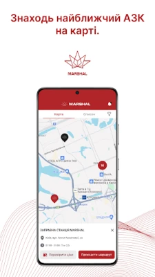 Už žiadne čakanie pri pokladni. Aplikácia MARSHAL Ukraine vám umožňuje nakupovať palivo priamo z vášho zariadenia, a to za výhodnejšie ceny než pri platbe na mieste. Potrebujete pomôcť priateľovi alebo členovi rodiny? Jednoducho zakúpte palivový poukaz a pošlite im ho – je to ideálny darček, ktorý poteší každého vodiča. Pre bezstarostné cestovanie je k dispozícii interaktívna mapa čerpacích staníc MARSHAL, ktorá vám nielen ukáže najbližšiu pobočku, ale aj naplánuje najrýchlejšiu trasu. S aplikáciou MARSHAL Ukraine nájdete vždy optimálnu zastávku s najlepšou ponukou.