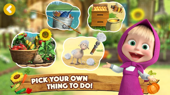 Avšak život na farme nie je len o záhradníctve! Na vašej rozmanitej usadlosti v aplikácii Masha and the Bear: games for 5 year olds sa deti postarajú aj o milé zvieratká. Zbierajte čerstvý med z vlastného včelína, strihajte vlnu zo svojich ovečiek a dokonca si skúste rybárčenie v priľahlom jazierku. S pomocou priateľov ako je Panda a Vlk bude každý deň plný nových výziev a objavov, prehlbujúcich ich skúsenosti s vidieckym životom.
