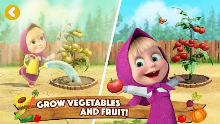 Staňte sa pravým záhradníkom v srdci vidieka! S Masha and the Bear: games for 5 year olds si deti osvoja umenie pestovania – od prípravy pôdy až po žatvu. Zasaďte semienka zeleniny ako sú šťavnaté paradajky a chrumkavé uhorky, alebo ovocné stromy rodiace sladké jablká a oranžové pomaranče. Nezabudnite ich pravidelne zalievať a chrániť pred škodcami, aby ste mohli zbierať tie najbohatšie úrody. Vaša farma bude kvitnúť farbami a chuťami!
